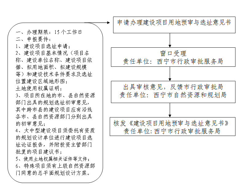| 涉及机构 | 西宁市行政审批服务局、 西宁市自然资源和规划局 | 办理地点 | 西宁市行政审批服务局3楼建设科23、24窗口 |